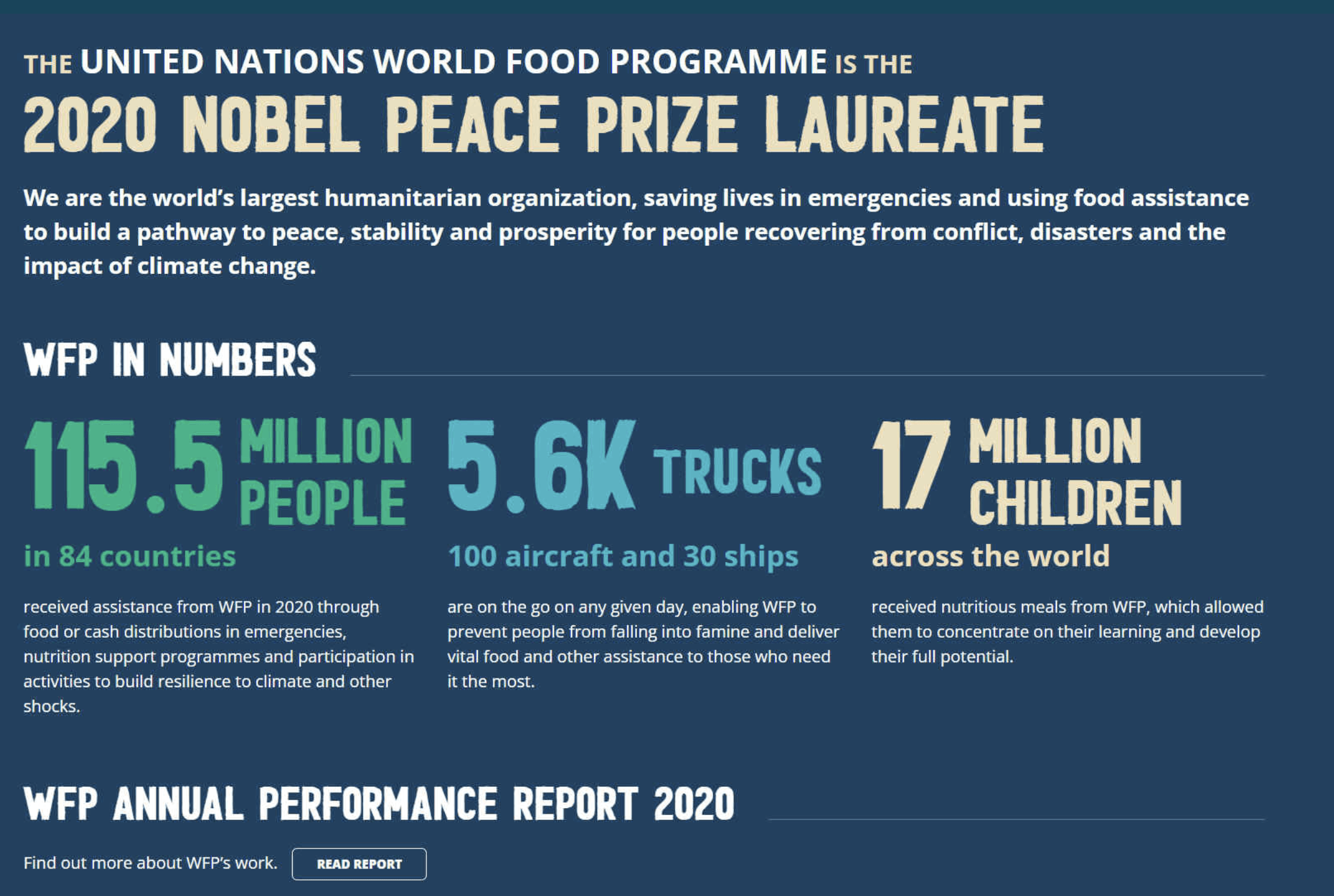 WFP was the Nobel Peace Prize Laurate in 2020.
